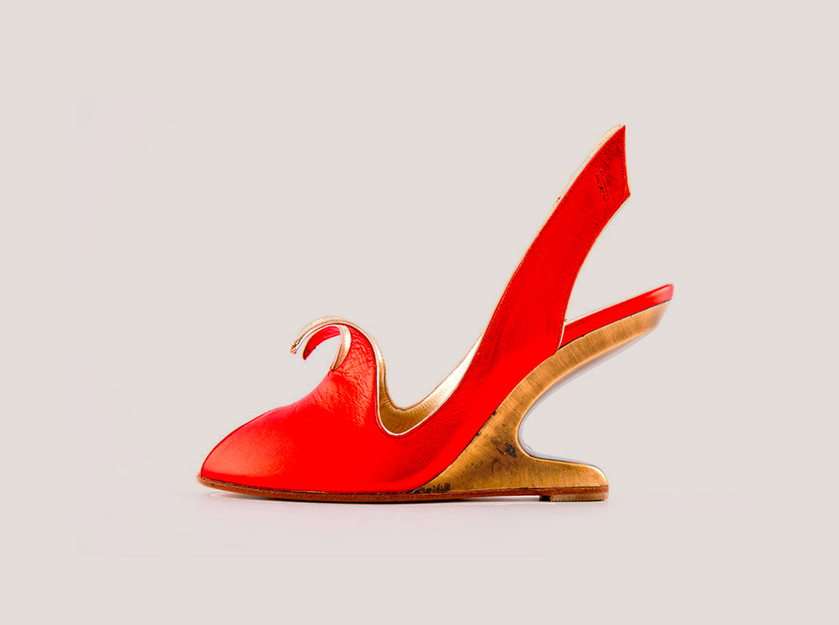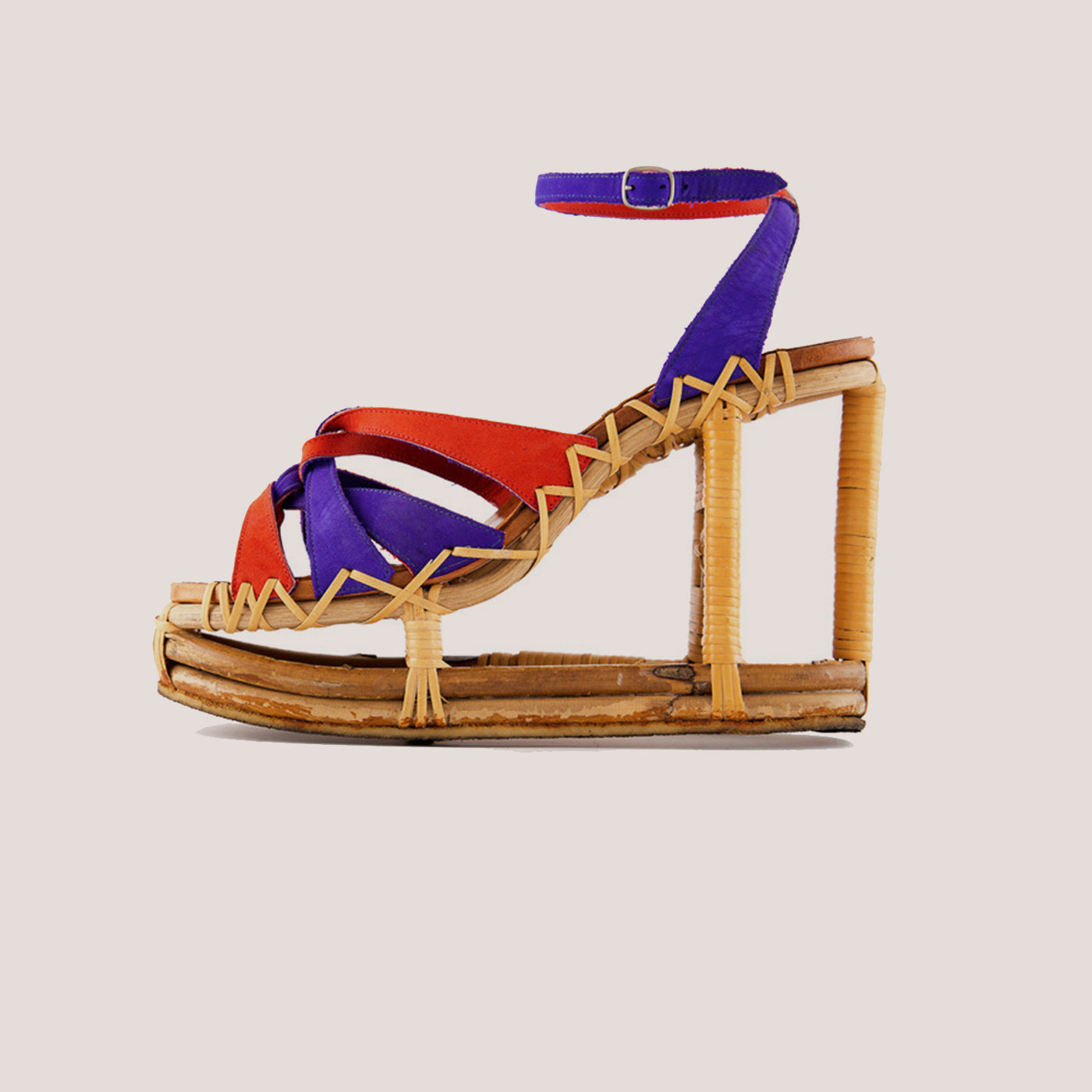 Jan: “Op een schoen moet je kunnen lopen. Binnen die beperking probeer ik altijd om iets te maken dat nog nooit iemand anders heeft gedaan.” In 1973 ziet zijn meest bekende creatie het daglicht: de Rattan, oftewel de bamboeschoen. Jan heeft er nooit iets aan verdiend, de schoen was veel te kostbaar om te produceren. Maar de schoen bezorgt Jan wel freelance-opdrachten van onder andere Multishoe uit New York, Garcia uit Spanje en Gucci uit Italië. Voor jeansmerk Falcon ontwerpt hij nog zo’n succesvol ontwerp: de High Heeled Sneaker, een suède sneaker met kunststof sleehak. De wedge sneakers die jaren later in de winkels liggen, zijn stuk voor stuk gebaseerd op dit ontwerp van Jan Jansen uit de jaren ’70.